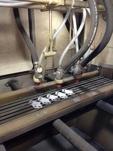 剎車片簡介 剎車片也叫剎車皮。在汽車的剎車系統中,剎車片是最關鍵的安全零件,所有剎車效果的好壞都是剎車片起決定性作用,所以說好的剎車片是人和汽車的保護神,剎車片一般由鋼板、粘接隔熱層和摩擦塊構成,鋼板要經過涂裝來防銹,那么剎車片生產過程中粘結過程中,噴砂、拋丸是一道非常重要的工藝,經過噴砂、拋丸的剎車片、可以使粘結更加牢固、更加穩定。 吉川科技針對剎車生產的工藝要求,研發設計出一款剎車片專用噴砂機,噴砂效率高,噴砂質量穩定,環保無污染等